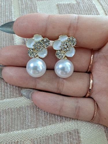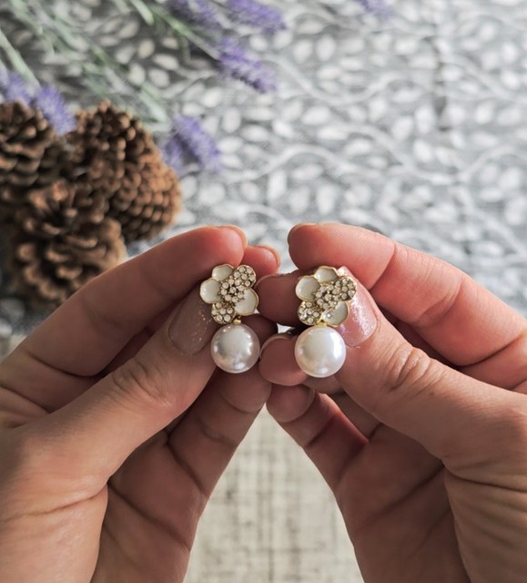 This item: Zircon White Enamel Camellia Pearl Pendant Earrings
